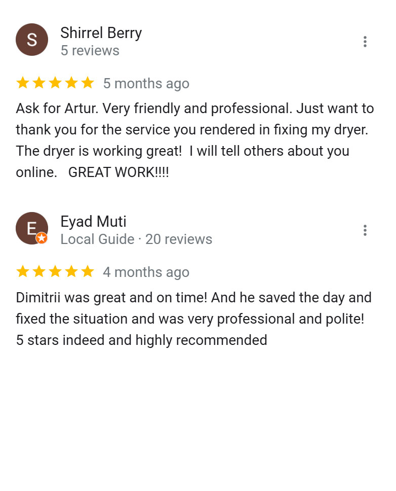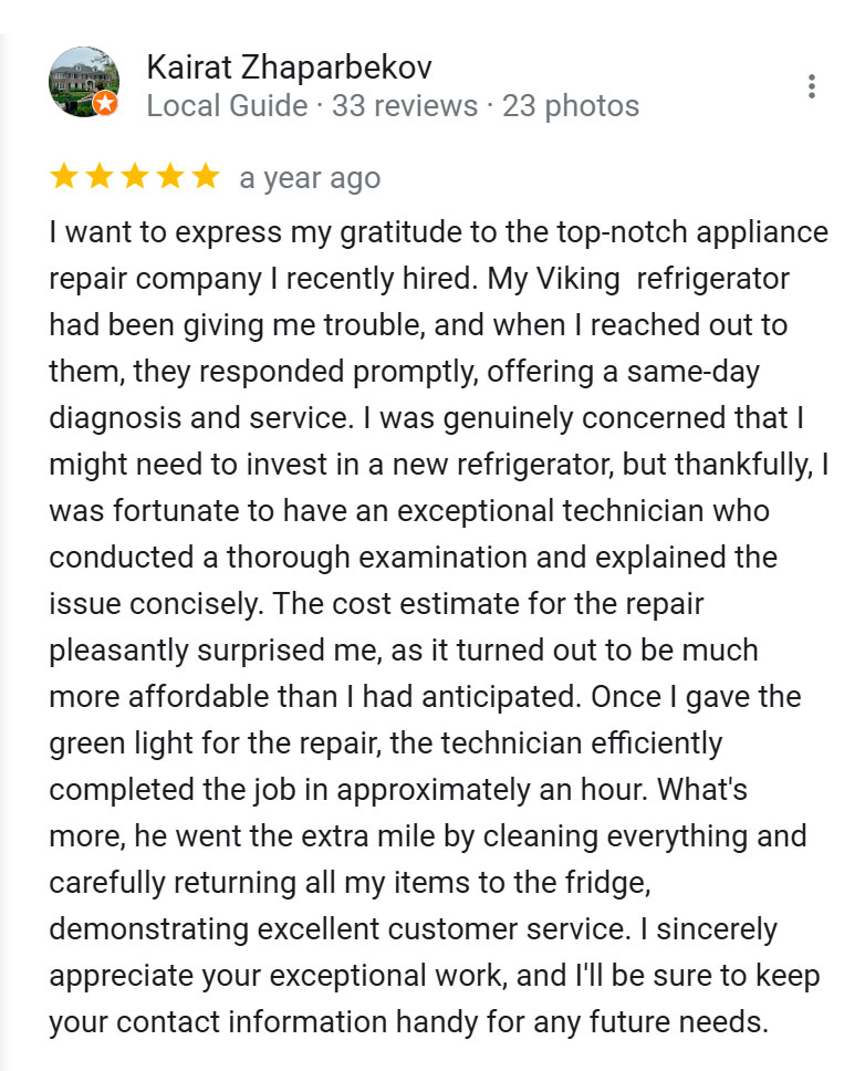 All our technicians have years of field experience and have repaired a lot of appliances.